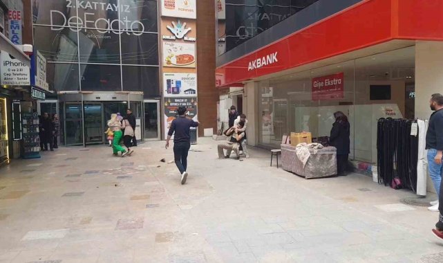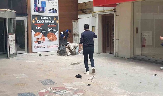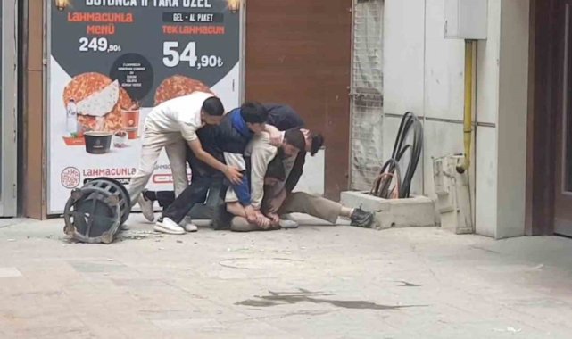 Öte yandan, alışveriş merkezinin girişinde yaşanan kavga anı cep telefonu kamerasına yansıdı.