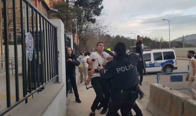 Kavgaya karışanların yakınları da polis merkezinin önüne gelerek ortalığı birbirine kattı. Polis merkezinin önüne gelen şahısların yakınlarından M.M. (24) ile Y.C.K. (22) isimli şahıslar ellerinde orak ve bijon anahtarı ile kavgaya karışanlardan birine saldırmaya çalışırken polis ekiplerinin hızlı müdahalesi faciayı engelledi.