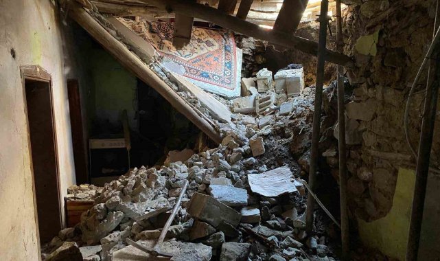 Van'ın Çatak ilçesinde 2 katlı evin toprak damı çöktü. Olay anında evde kimsenin bulunmaması muhtemel faciayı önledi.