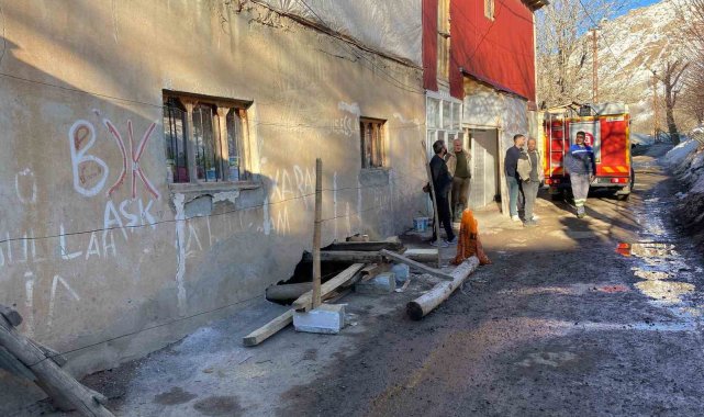 Çatak'ta 2 katlı evin toprak damı çöktü