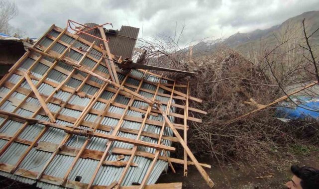 Van'ın Çatak ilçesinde etkili olan fırtına nedeniyle 2 mahallede çok sayıda ev ve ahırda hasar meydana geldi.