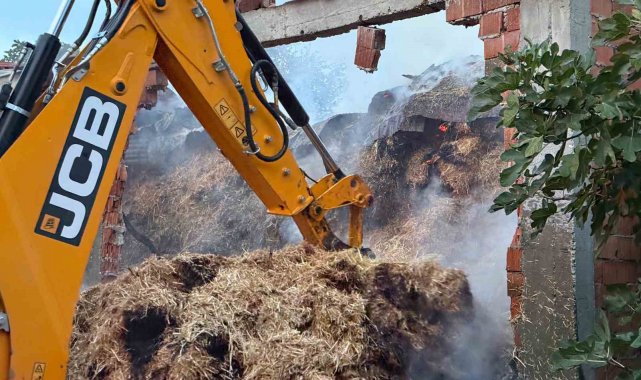 İstanbul Çatalca'da bir samanlıkta çıkan yangın, ahıra ve eve sıçradı. Yangında 4 hayvan telef olurken, yapılarda büyük hasar meydana geldi.