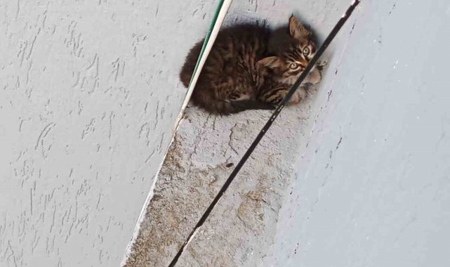 Olay, Efeler ilçesi Efeler Mahallesi 2286 Sokak üzerinde meydana geldi. Edinilen bilgiye göre bir evin çatısında yavru kedi sesi duyan vatandaşlar, çatıya çıkarak kontrol etti. Gelen sesi takip eden ev sahibi vatandaş, yavru kedinin çatının kenar bölümünde duvarın üzerinde mahsur kaldığını fark ederken, durumu 112 Acil Çağrı Merkezi'ne bildirdi. İhbar üzerine bölgeye itfaiye ve polis ekipleri sevk edildi. Kısa sürede bölgeye gelen itfaiye ekipleri, çatıya çıkarak kediyi kurtarmak için çalışma başlattı. Yavru kedinin çatıdan düşmemesi için dikkatlice çalışan itfaiye ekiplerinin müdahalesiyle yavru kedi, ağ marifetiyle güvenli bir şekilde kurtarıldı. Apartman sakinleri ise güvenle kurtarılan yavru kedi için ekiplere teşekkür etti.