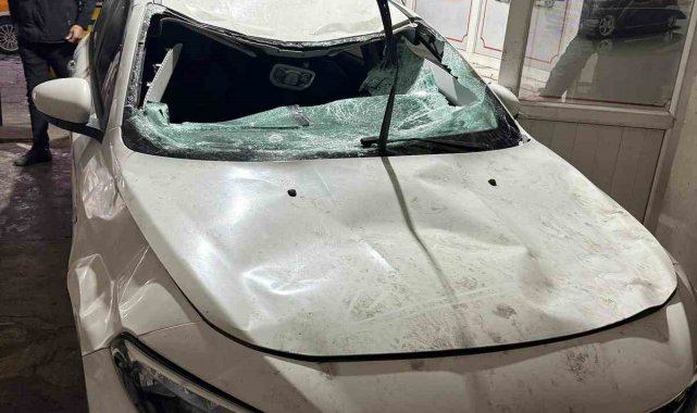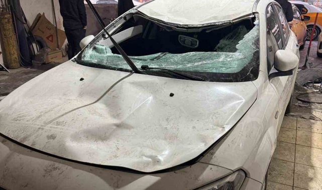 Çatıda çözülen kar kütlesi otomobilin üzerine düştü