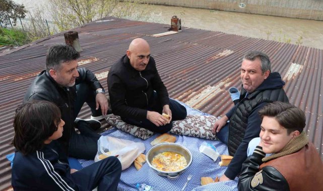 Çatıda kaygana yiyerek maç izlediler