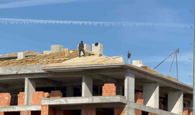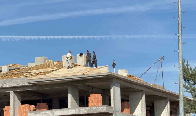 Çatıda tedbirsiz çalışan işçiler yürekleri ağza getirdi: O anlar kameraya yansıdı