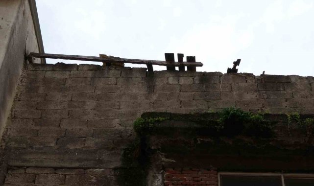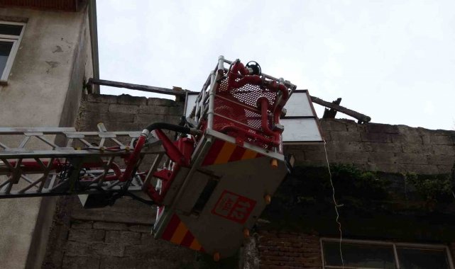 Çatıdan tehlikeli şekilde sarkan pano, itfaiye ekiplerince kaldırıldı