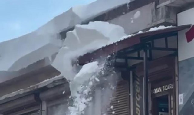Çatılardan düşen kar kütleleri paniğe neden oldu