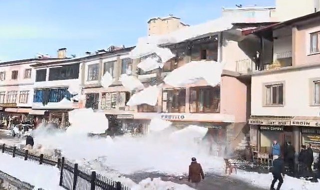 Çatı saçaklarında ve yüksek binalarda biriken karların risk oluşturduğunu belirten yetkililer, vatandaşları dikkatli olmaları konusunda uyardı.