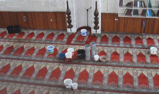 Çatısı akan 201 yıllık camide kovalı önlem