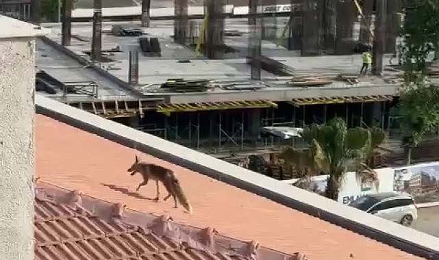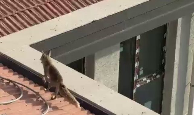 Adıyaman'da, bir binanın tepesine çıkan tilki ekipleri ve inşaat işçilerini harekete geçirdi.