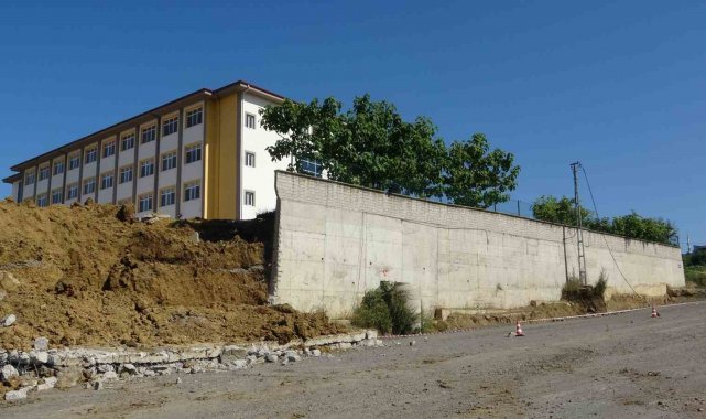 Çatlaklar oluşan lisenin bahçe duvarı yıkıldı