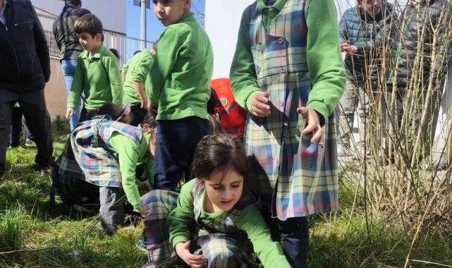 Çavdarhisar'da minikler okul bahçesine fidan dikti