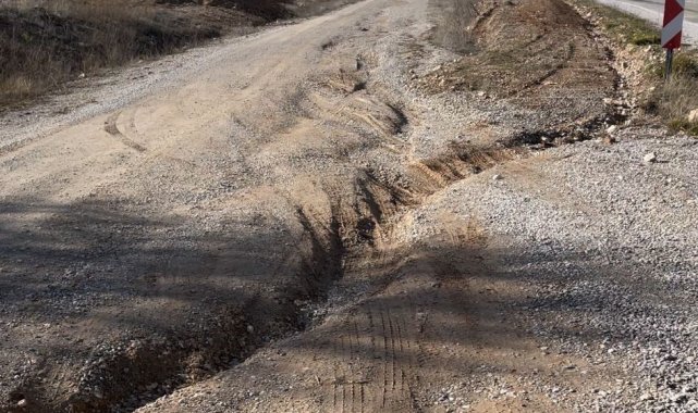 Sel suları nedeniyle baştan aşağı derin çukurun oluştuğu ve hiçbir trafik işareti ile aydınlatmanın olmadığı köy yolu girişi özellikle gece trafiğe çıkanlar için tehlike arz ediyor