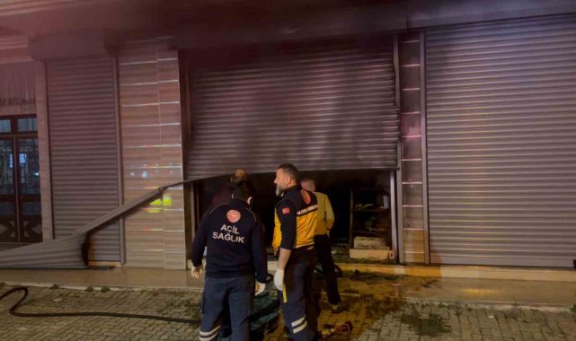 Rize'de çay toplama makinesi firmasına ait, içerisi akülü çay toplama makineleriyle dolu depoda yangın çıktı.