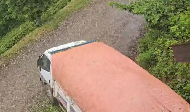 Rize'nin Pazar ilçesinde dolu yağışı üreticilerin çay bahçelerinden kaçışmasına sebep oldu.