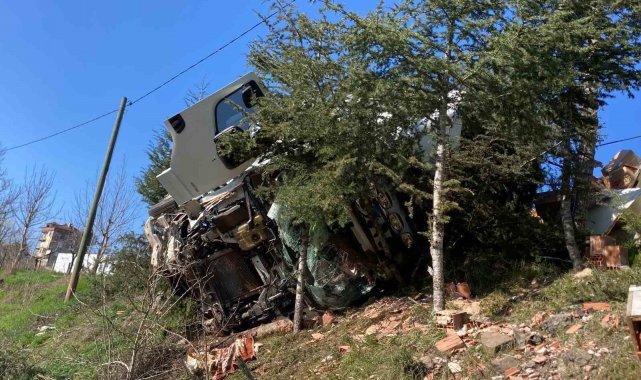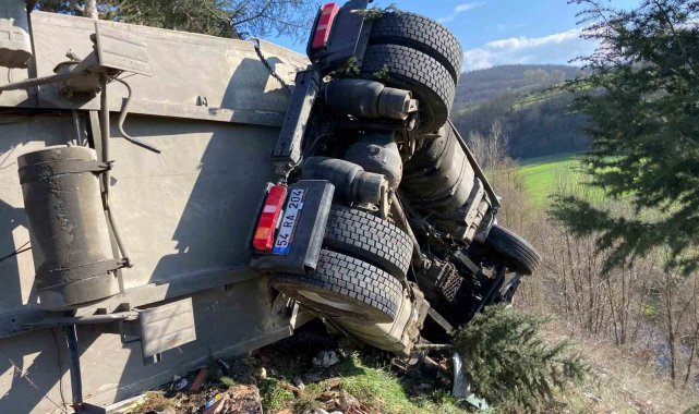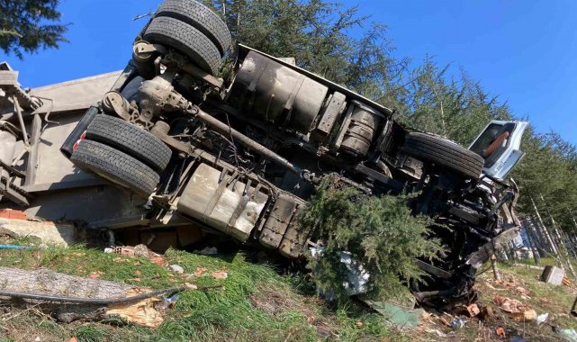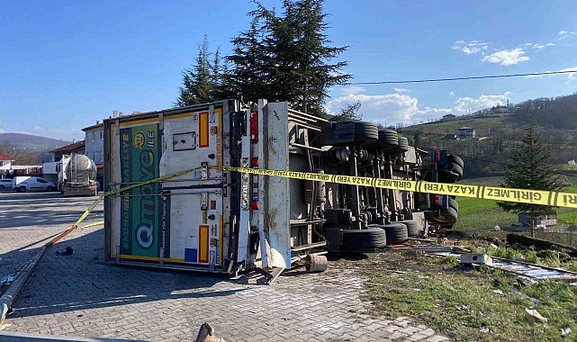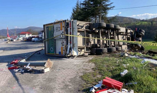 Samsun'da çay yüklü tırın devrildiği kazada sürücü yaralandı.