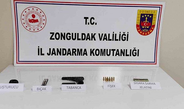 Çaycuma ilçesinde, jandarma ekiplerince gerçekleştirilen denetim sırasında E.O. (28), M.H. (23) ve B.A. (20) isimli şahısların bulunduğu araçta yapılan aramada; 5 gram kubar esrar, 1 adet 7.65 mm ruhsatsız tabanca,