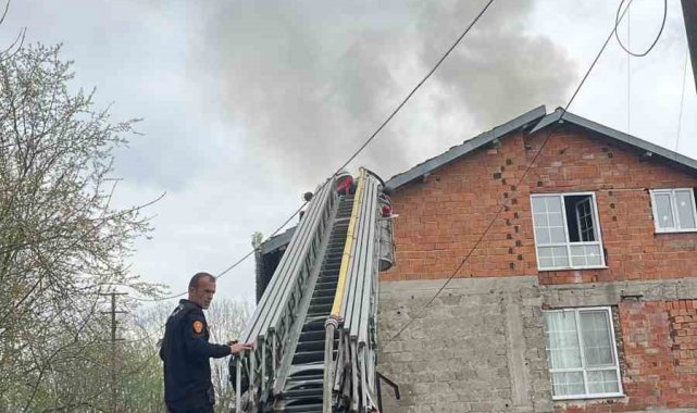 Zonguldak'ın Çaycuma ilçesine bağlı Perşembe beldesi Keçecioğlu Mahallesinde iki katlı evde doğalgaz kaynaklı olduğu iddia edilen yangın sonucu evin çatı katı alevlere teslim oldu. Yangın sırasında yaşanan patlama anı ise saniye saniye amatör kameraya yansıdı.