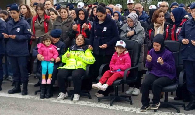 Kalp krizi sonrasında hayatını kaybeden Jandarma Kıdemli Başçavuş Mustafa Yılmaz için sabah saat 09.00'da İlçe Jandarma Komutanlığı önünde uğurlama töreni düzenlendi. Hastane morgundan alınan Yılmaz'ın cenazesi İlçe Jandarma Komutanlığı önünde kalabalık tarafından karşılandı. Askerlerin omzunda cenaze aracından alınan Yılmaz'ın naaşını eşinin üniformasını üzerine giyen Nilüfer Yılmaz ve çocukları asker selamıyla karşıladılar.