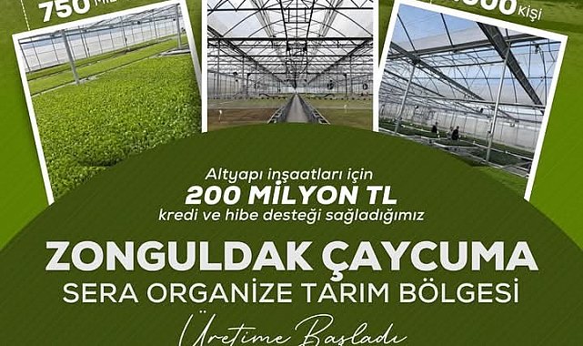 Bakan Yumaklı, yaptığı yazılı açıklamada, "Zonguldak Çaycuma Sera Organize Tarım Bölgesi artık üretimde. Yılda 750 milyon TL ekonomiye katkı sağlayacak bu proje, bölge ekonomisine can, ülkemize güç katacak. Hayırlı olsun" ifadelerine yer verdi.