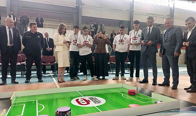 Açılışta renkli anlar da yaşandı. Çaycuma Kaymakamı Adem Kaya ile Gökçebey Kaymakamı Rüveyda Kahraman Şıktaş, robot futbolcularla dostluk maçı yaptı.
