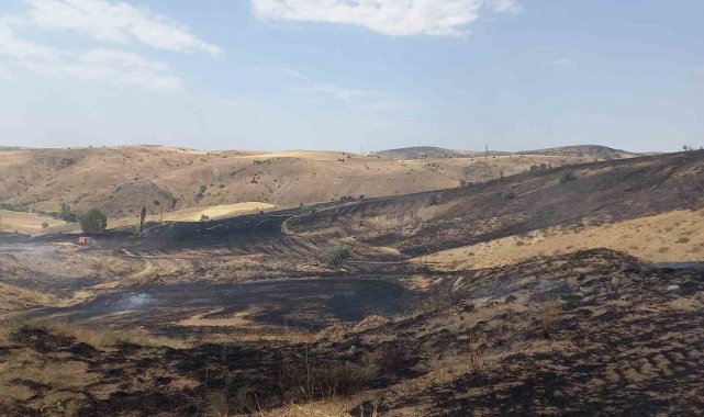 Yozgat'ta arızalanan trafo nedeniyle çıkan anız yangınında yaklaşık 400 dönüm arazi küle döndü.