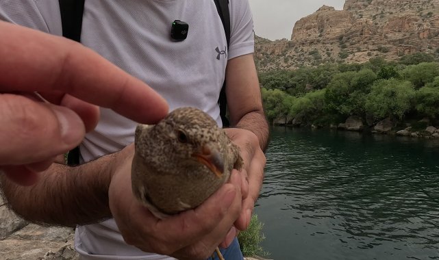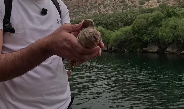Şırnak'ın İdil ilçesinde Cehennem Deresi'nde balıkçı ağına takılan koruma altındaki kum kekliği, doğa fotoğrafçısı Tarık Oran tarafından kurtarıldı.