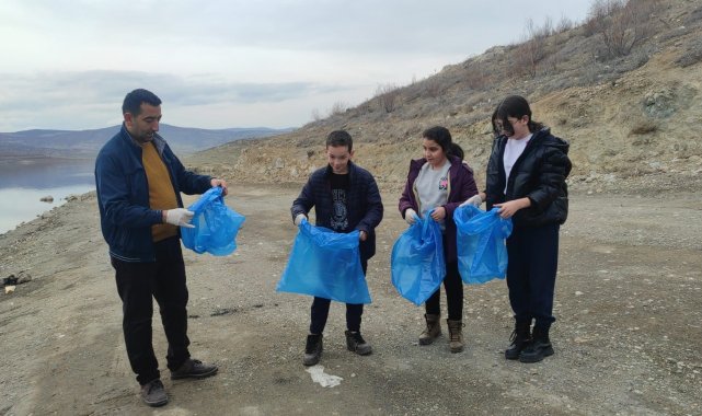 Çekerek Barajı'nda gönüllü olarak çöp toplayan aile herkese örnek oldu.