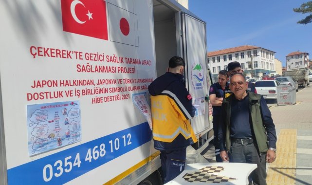 Japon Büyükelçiliği Yerel Projelere Hibe Programı doğrultusunda Çekerek ilçesine kazandırılan gezici sağlık tarama aracı, ilçe merkezinde hizmet verdi. Çekerek ilçesinde yaşayan vatandaşların sağlık hizmetlerinden faydalanabilmesi için mobil sağlık tarama aracında çeşitli ölçümler yapıldı. İlçe sakinlerinin kan şekeri, ateş ve tansiyon ölçümü gibi değerlerine bakıldı. Sigaranın zararları, sağlıklı beslenme tüyoları hakkında meslek yüksekokulu öğrencileri ve öğretim elemanları bilgilendirme yaptı.