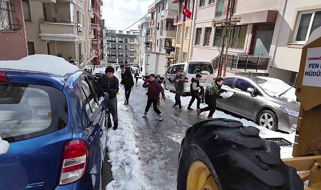 Çekmeköy'de etkili olan kar yağışı, çocuklar için eğlenceli anlara sahne oldu. Kar küreme ekipleri sokakları temizlemek için çalışmalara başladığında, oyun oynayan çocuklar ekiplerin önüne geçerek "Sokağı temizlemeyin, biraz daha oynamak istiyoruz!" dedi ve ekip araçlarını kartopu yağmuruna tuttu.