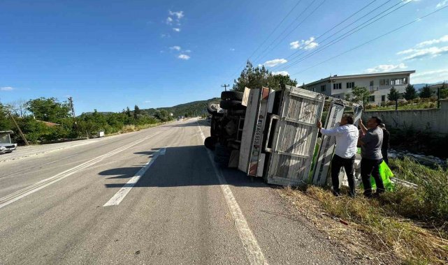 Burdur'un Çeltikçi ilçesi Ağlasun yolu üzerinde gazbeton yüklü kamyonet, kontrolden çıkarak şarampole devrildi. Kazada yaralanan olmazken, araçta ve yüklü inşaat malzemelerinde maddi hasar oluştu.