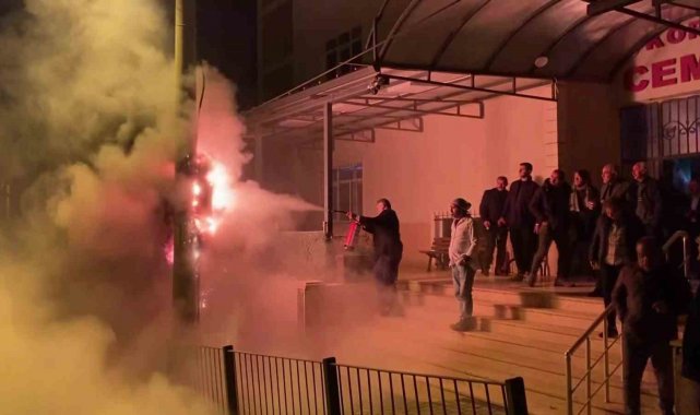 Kocaeli'de tören sırasında cemevinin önünde bulunan elektrik panosunda çıkan yangın paniğe yol açtı. Aralarında vali yardımcısı ve kaymakamın da bulunduğu davetliler cemevinden tahliye edilirken, yangın itfaiye ekiplerinin müdahalesiyle söndürüldü.