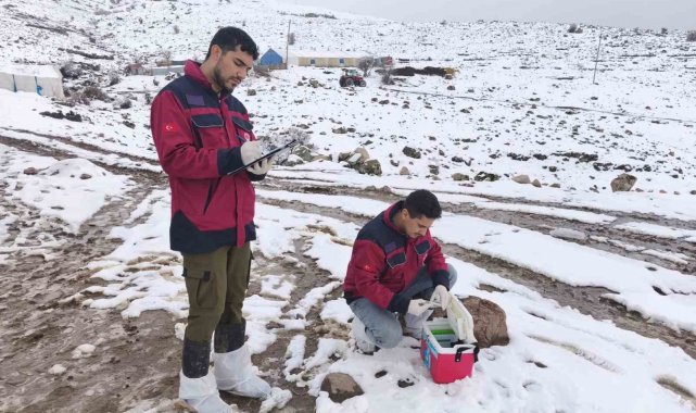 Tunceli'nin en çok küçükbaş hayvan yetiştiriciliğinin yapıldığı Çemişgezek ilçesinde veteriner hekimler, yoğun kar ve soğuk havaya aldırış etmeden köy köy dolaşarak besicilere hizmet veriyor.