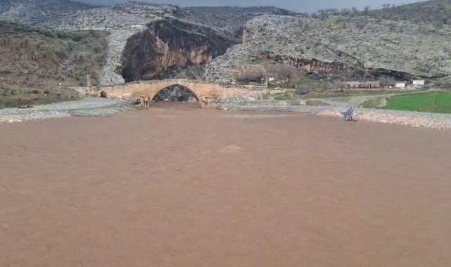 Adıyaman'da etkili olan sağanak yağışların ardından, Tarihi Cendere Köprüsü altından geçen Cendere Çayı'nın su seviyesi önemli ölçüde yükseldi.