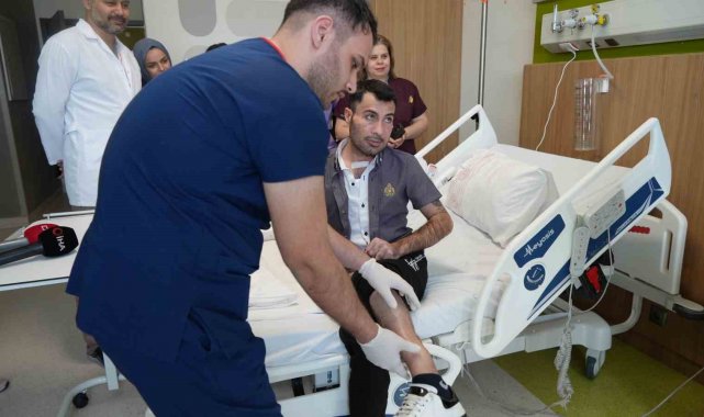 Hastanın yeni çenesine kavuştuğunu söyleyen Kulak Burun Boğaz Uzmanı Doç. Dr. Secaattin Gülşen, "Hanifi Bey bize geldiğinde yaklaşık 3 yıldır çenesinde tümörü olan bir hastaydı. Tümörde 3 yıl içinde giderek büyümüş, bütün çenenin yarısını tutmuş. Yaklaşık 18 santimlik bir tümördü. Biz bu tümörü tamamen çıkardık. Çenenin yarısını tamamen aldık. Oluşan büyük defekti de hastanın bacağından aldığımız serbest doku flebiyle, hem cilt hem kemik damarlı serbest doku nakliyle yeni çenesini yaptık. Şu an çenesi fonksiyonel, yani çalışıyor, ağız hareketlerini rahatlıkla yapabiliyor. Yine yüzdeki bu tümörü çıkartırken yüz siniri ve onun dallarını da koruduk. Yüz sinirini ve dallarını koruduğumuz için de hastanın yüz mimik hareketleri, dudak hareketleri, göz hareketleri de korundu. Şu anda hasta ameliyatın 25. gününde ağızdan gıda alabiliyor, beslenebiliyor. Ağız içindeki defekt, o tümörünü çıkardığımız yer tamamen kapanmış durumda. Birkaç gün içinde de taburcu etmeyi planlıyoruz" dedi.