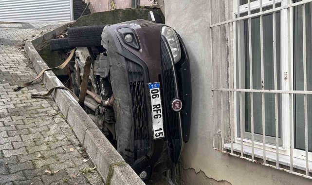 Üsküdar'da yokuş aşağı park halindeyken vitesi boşta kalan araç kontrolden çıkarak bir evin bahçesine düştü. Olayda yaralanan olmazken, kaza nedeniyle araçta büyük çapta maddi hasar meydana geldi.