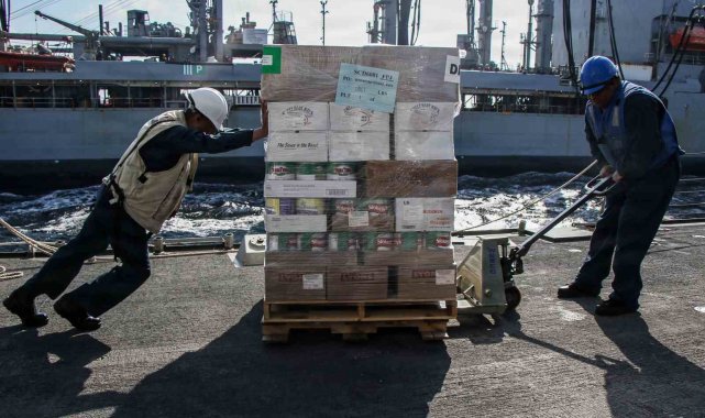 ABD Merkez Kuvvetler Komutanlığı (CENTCOM), ABD Deniz Kuvvetleri'ne ait gemilere yönelik gıda ve yakıt ikmal faaliyetlerine ilişkin paylaşımda bulundu.