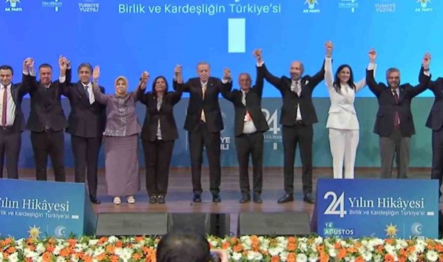 AK Parti'nin 24. Kuruluş Yıl Dönümü Programı'nda Aydın Büyükşehir Belediye Başkanı Özlem Çerçioğlu, AK Parti'ye katıldı. AK Parti Kongre Merkezi'nde gerçekleştirilen programda konuşan Cumhurbaşkanı Recep Tayyip Erdoğan; "Dünden beri ahlaksızca, haysiyetsizce, her türlü insani değeri ayaklar altına alan hoyrat bir üslupla AK Parti ailesinin yeni üyelerine saldıranlara 'Hadi oradan' diyorum. Türkiye Yüzyılı'nın inşası mücadelemize destek olmak amacıyla aramıza katılan tüm arkadaşlarımıza 'Hoş geldiniz, sefalar getirdiniz' diyorum" diye konuştu.