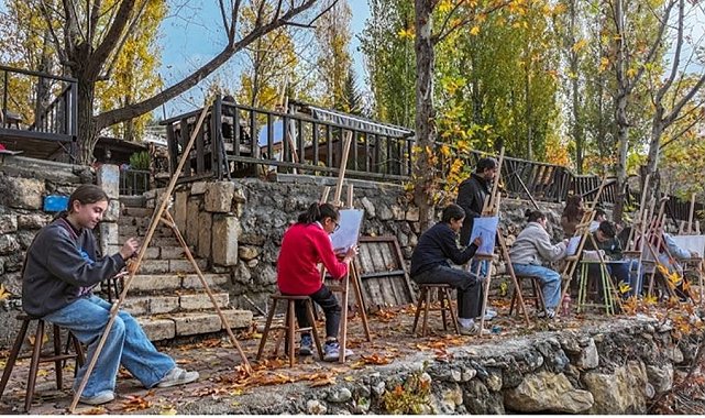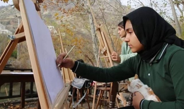 Diyarbakır'ın Çermik ilçesinde öğrenciler tarihi ve doğayı tuvale taşıyor.