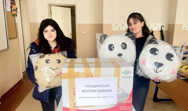 Çocuk Gelişimi ve Eğitimi bölümü 11/A sınıfı öğrencilerinin el emeği göz nuru olarak ürettikleri dolgu oyuncaklar, Kayseri'deki öğrenci kardeşlerine gönderildi. 11/A sınıfı öğrencilerinden Elif Öztürk, 'Paylaşan Eller, Büyüyen Değerler' kapsamında gönülleri inşa ettiklerini söyledi. Öztürk, "Bugün sadece paketleri kolilemiyoruz; aslında şehirler arasında gönül köprüsünü inşa ediyoruz. Gönderdiğimiz her bir ürünün, gittiği yerde, bir umuda ve yeni bir arkadaşlığa dönüşeceğini biliyoruz. Paylaşmak sadece bir şey vermek değil. Birbirimizin hayatına dokunmaktır. Bu köprünün her bir tuğlasında emeği olanlara teşekkür ederim. Yolumuz sevgi yükümüz kardeşlik olsun. Hediyelerimizi iyi günlerde kullanmanız dileğiyle" dedi.