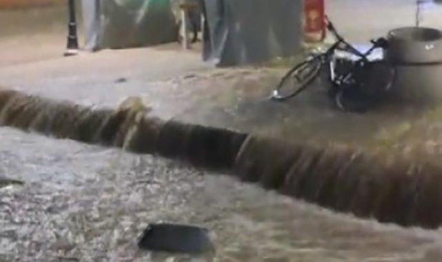 İzmir'in Çeşme ilçesinde gece saatlerinde etkili olan kuvvetli sağanak nedeniyle cadde ve sokaklar göle döndü, bazı ev ve iş yerlerini su bastı. Denizden çekilen bir videoda ise adeta denizle karanın birleştiği görüldü.
