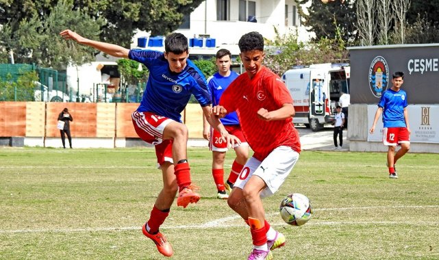 Çeşme Belediyespor, Alaçatıspor ve Ilıcaspor'un U-16 takımlarından oluşan karma ekip, Sakız Adası'ndan gelen U-16 takımı ile Çeşme Stadı'nda dostluk maçı yaptı.