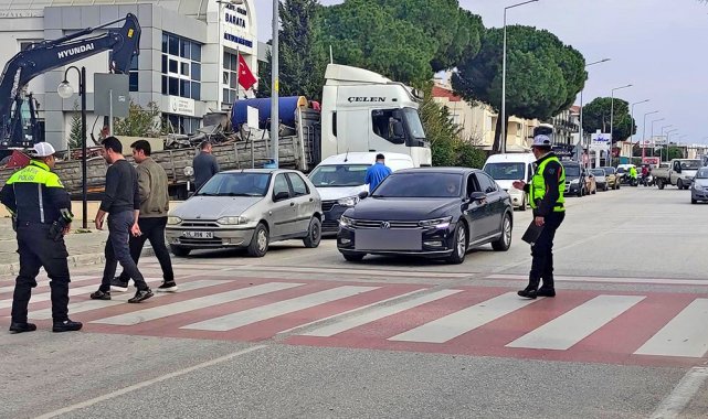 Çeşme İlçe Emniyet Müdürlüğü, yayalara öncelik verilmesi konusunda denetimlerini sürdürüyor. Trafik Büro Amirliği ekipleri, levhalarla belirlenmiş yaya ve okul geçitlerinde kurallara uymayan sürücülere yönelik cezai işlem uyguluyor.