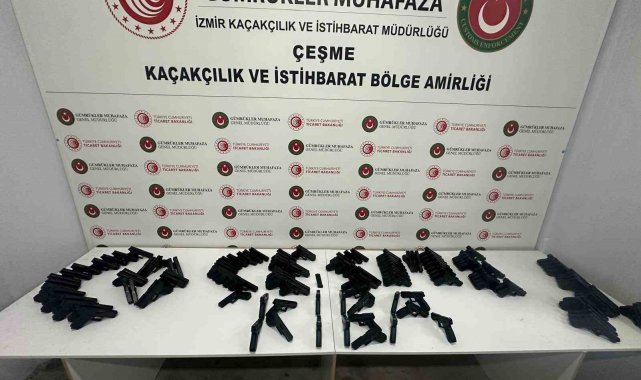 Çeşme Gümrük Muhafaza Kaçakçılık ve İstihbarat Bölge Amirliği ekipleri, dün akşam saatlerinde Almanya'ya gitmek üzere Çesme Limanı'na gelen ve tekstil malzemeleri taşıdığı öğrenilen tırı risk analizi için X-Ray taramasına sevk etti. Bu esnada ekipler aracın taramaya girmeden önce liman sahasında bekleme yaptığını belirledi. Durumdan şüphelenen ekipler, tırın cihaza girmeden önce konteynerlerin yanına koli indirdiğini tespit etti. Kolilerde yapılan aramada çoğu 'hayalet silah' olarak tabir edilen tabanca olmak üzere toplam 138 tabanca ve 135 şarjör ele geçirildi. Savcılık talimatıyla gözaltına alınan tır şoförü F.A., işlemlerinin ardından adliyeye sevk edildi.