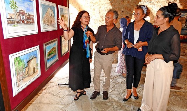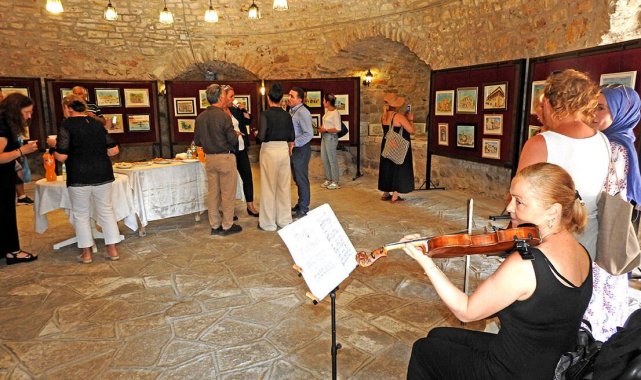 Çeşme Kalesi'nde açılan sergide Çeşme'nin tarihi yapılar, resim ve fotoğraflarla yeniden hayat buldu.