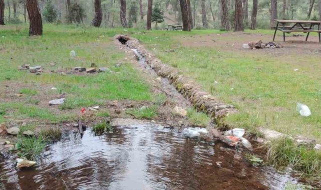 Eskişehir'de ormanın içinde bulunan ve yeraltı kaynağından çıkan doğal maden suyu çeşmesi havaların ısınması ile vatandaşların ilgi odağı oluyor.