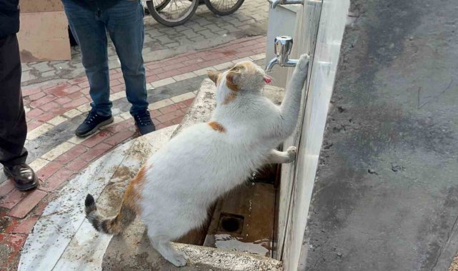 Kuyubaşı Mahallesi'nde bir kedi, otobüs durağında bulunan çeşmeye gelerek musluklara uzandı. Susuzluktan bitkin düştüğü gözlenen kedinin halini fark eden duyarlı vatandaşlar, musluğu açtı. Bir patisiyle musluğu kavrayan kedi, dakikalarca kana kana su içti. Vatandaşlar, bu görüntünün tesadüf olmadığını, kış aylarında sokak hayvanlarının hayatta kalma mücadelesinin her gün tekrarlandığını dile getirdi.