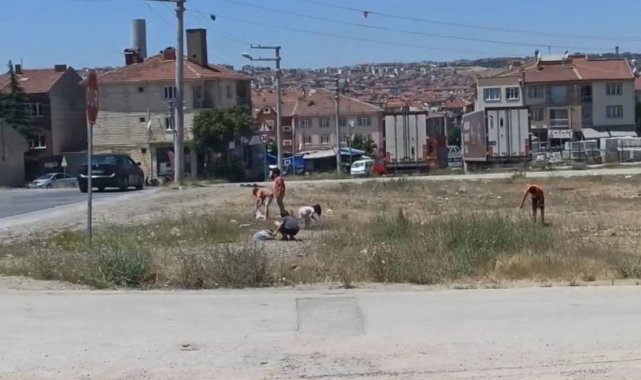 Eskişehir'de sıcak havaya rağmen çevre temizliği yapan çocukları, mahalle esnafı dondurma ile ödüllendirdi.