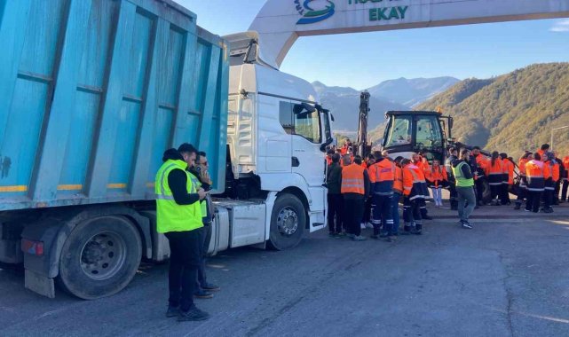 Evra Gruop tarafından işletilen Trabzon-Rize Katı Atık Bertaraf Tesisi'nde (TRAB-Rİ KAB) çalışan işçiler, maaşlarını alamadıkları gerekçesiyle bu sabah eylem başlattı. Tesisin kapısını iş makinesi ile kapatan çalışanlar, haklarını alıncaya kadar tesise çöp kamyonu girişini engelleyeceklerini belirtti. Eylem nedeniyle sabah saatlerinde tesise çöp getiren kamyonlar, tesis önünde bekleyişlerini sürdürüyor.